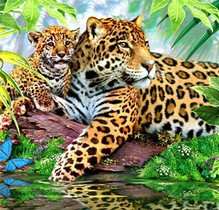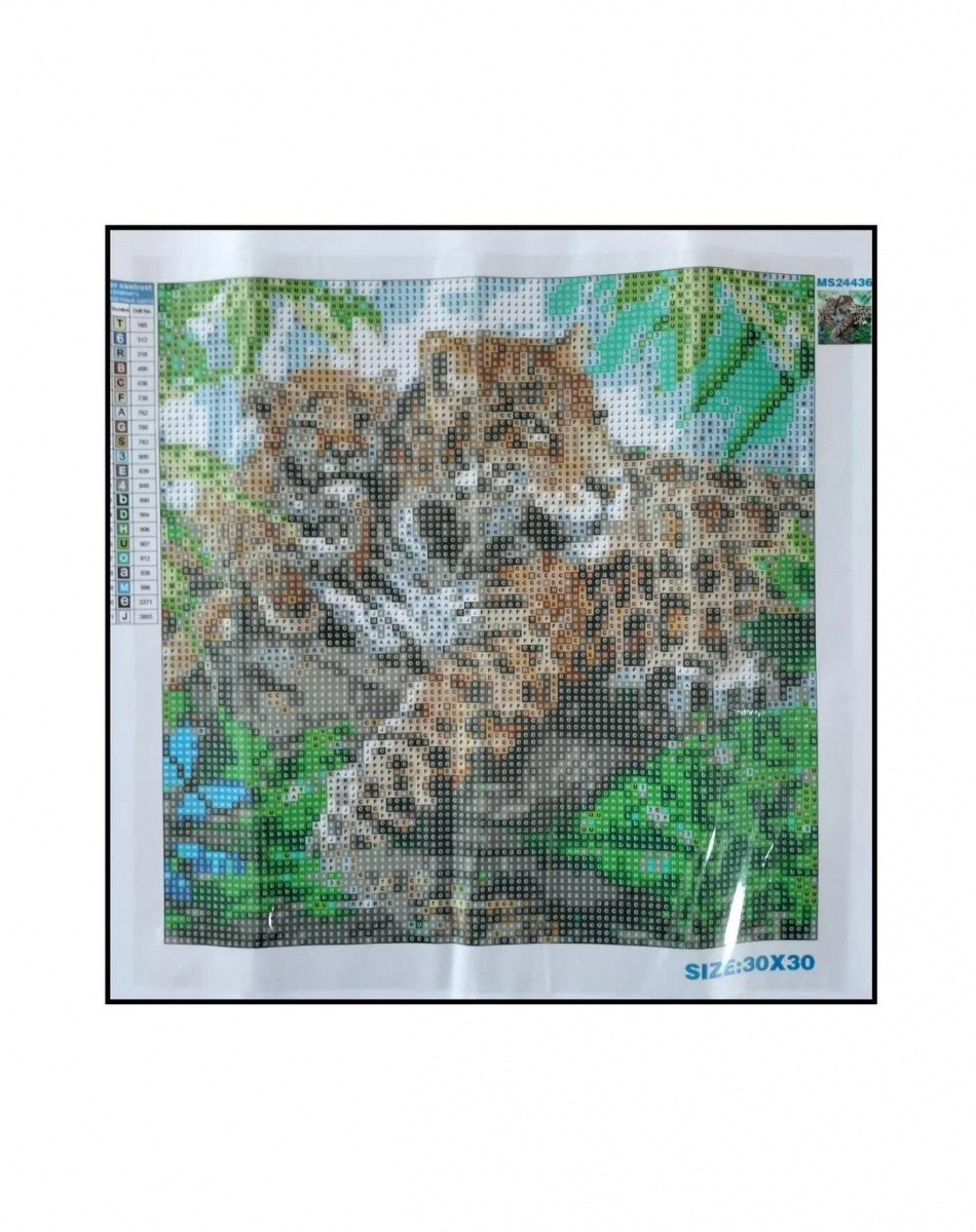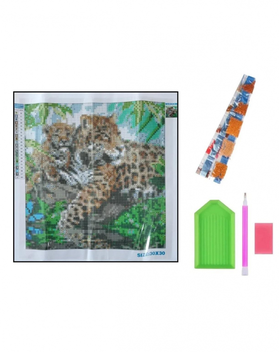 Алмазная мозаика картина стразами Леопард с детёнышем, 30х30 см