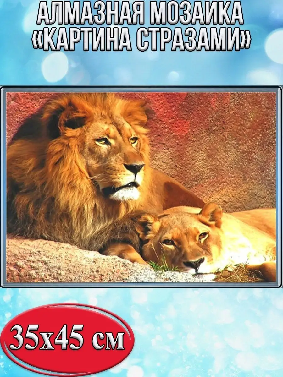 Алмазная мозаика картина стразами Лев и львица, 40х50 см