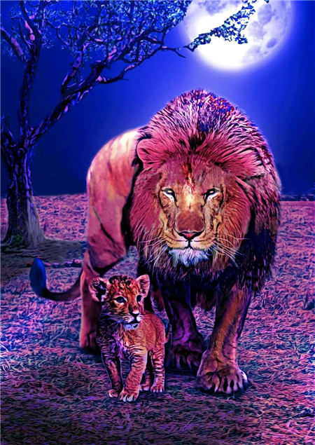 Алмазная мозаика картина стразами Лев со львёнком, 40х50 см