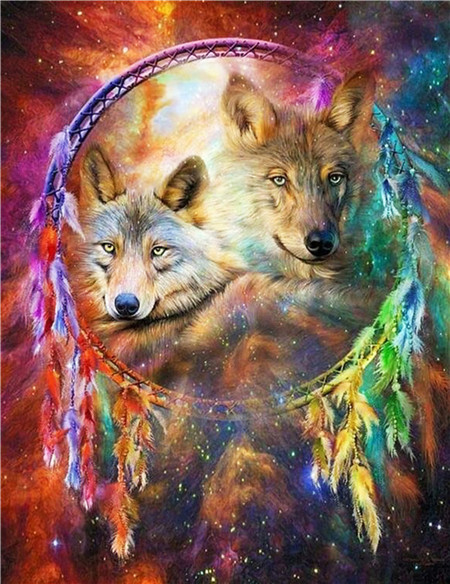 Алмазная мозаика картина стразами Ловец снов с волками, 50х65 см