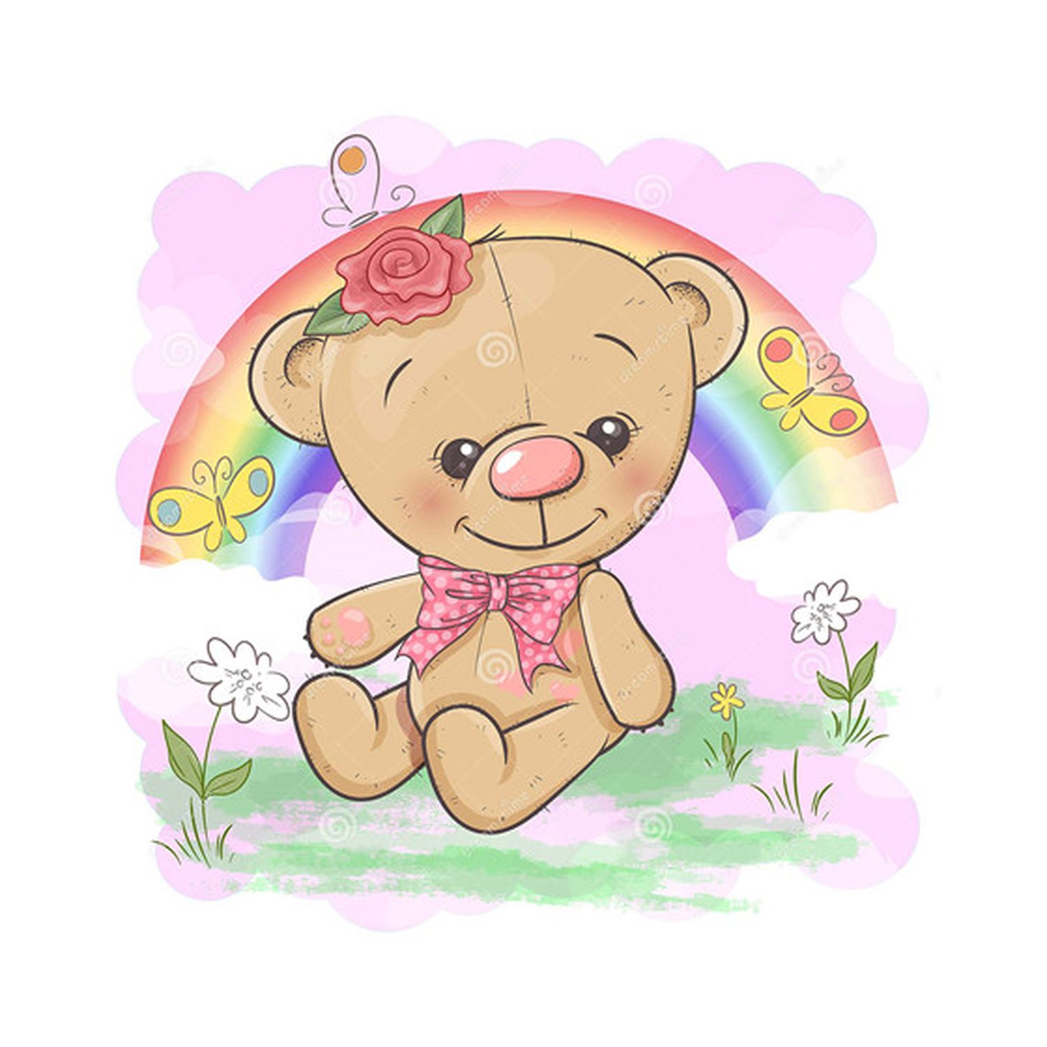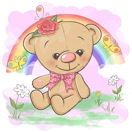 Алмазная мозаика картина стразами Мишка с радугой, 30х30 см
