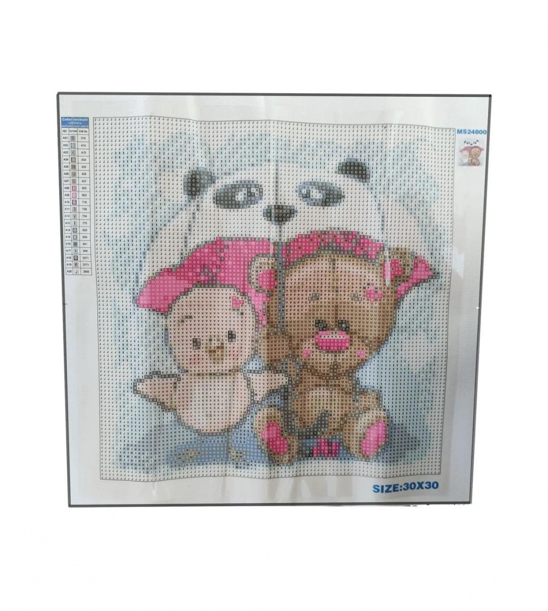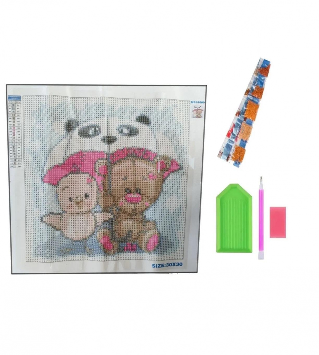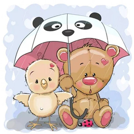 Алмазная мозаика картина стразами Птенчик с мишкой под зонтом, 30х30 см