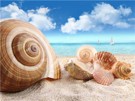Алмазная мозаика картина стразами Ракушки на песке, 50х65 см