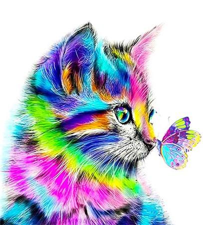 Алмазная мозаика картина стразами Разноцветный котёнок с бабочкой, 15х20 см