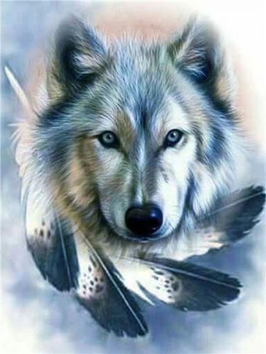 Алмазная мозаика картина стразами Разноцветный волк, 30х40 см