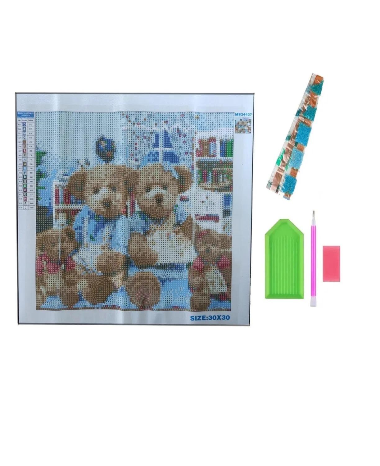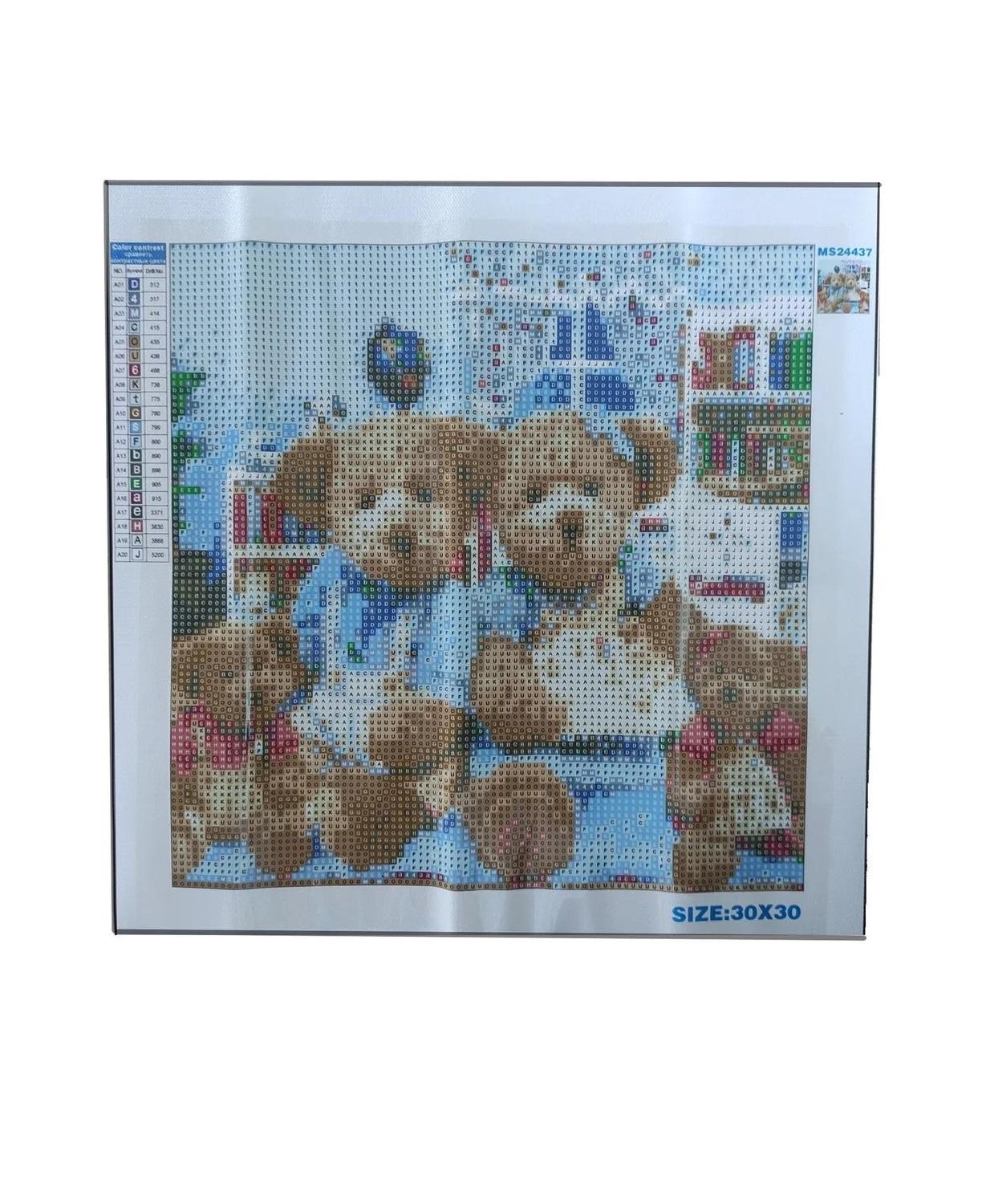 Алмазная мозаика картина стразами Семья плюшевых медведей, 30х30 см