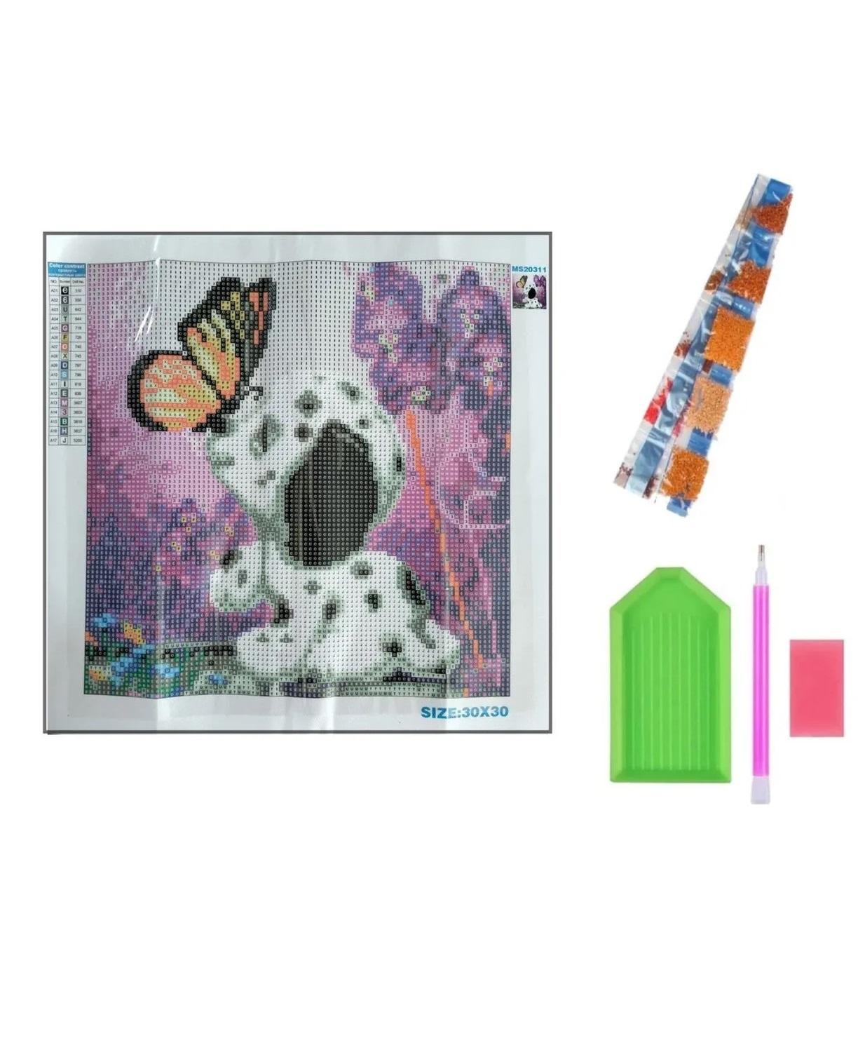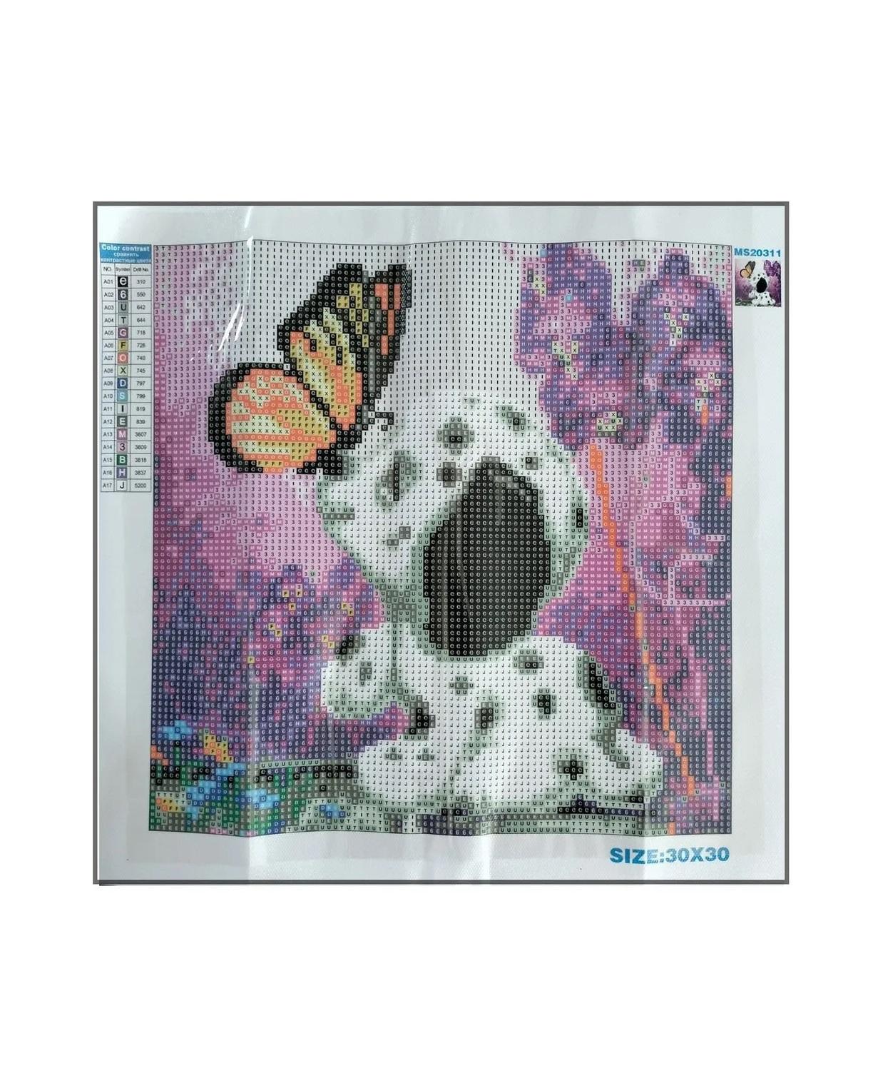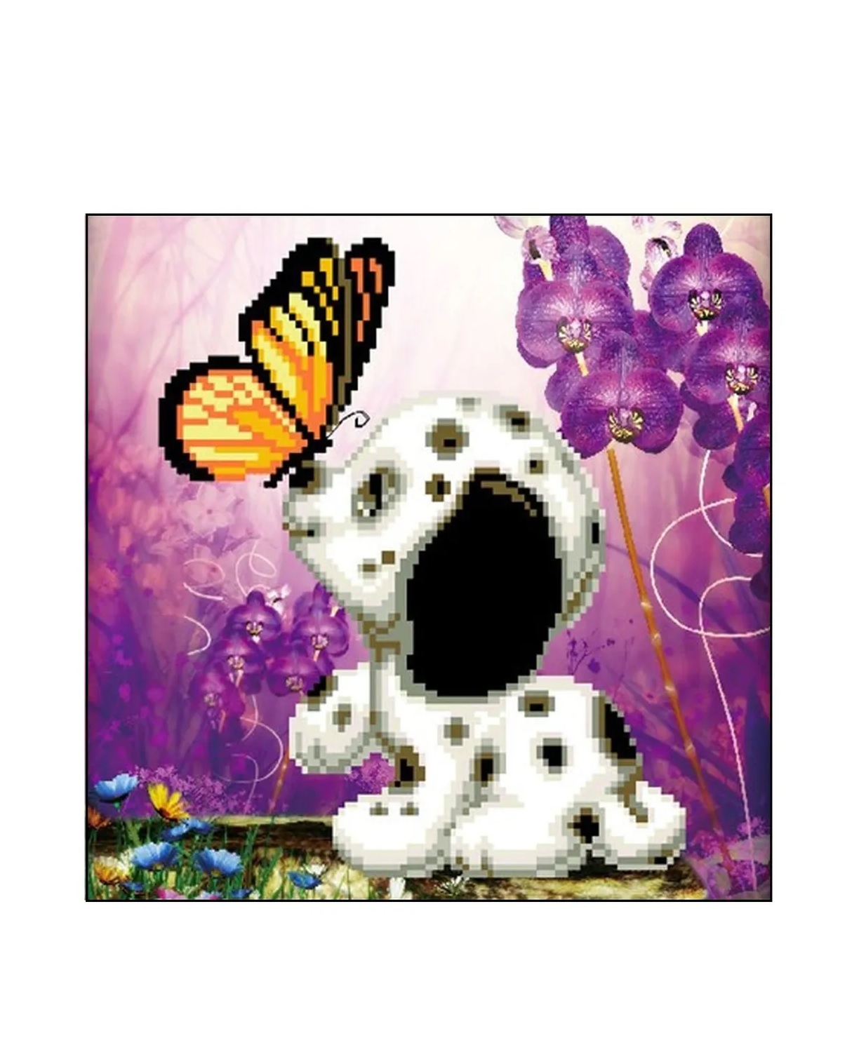 Алмазная мозаика картина стразами Щенок с бабочкой, 30х30 см