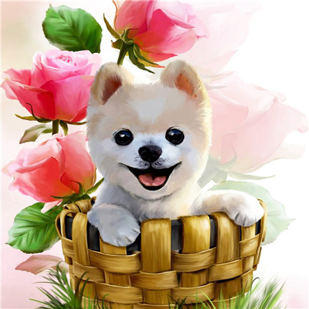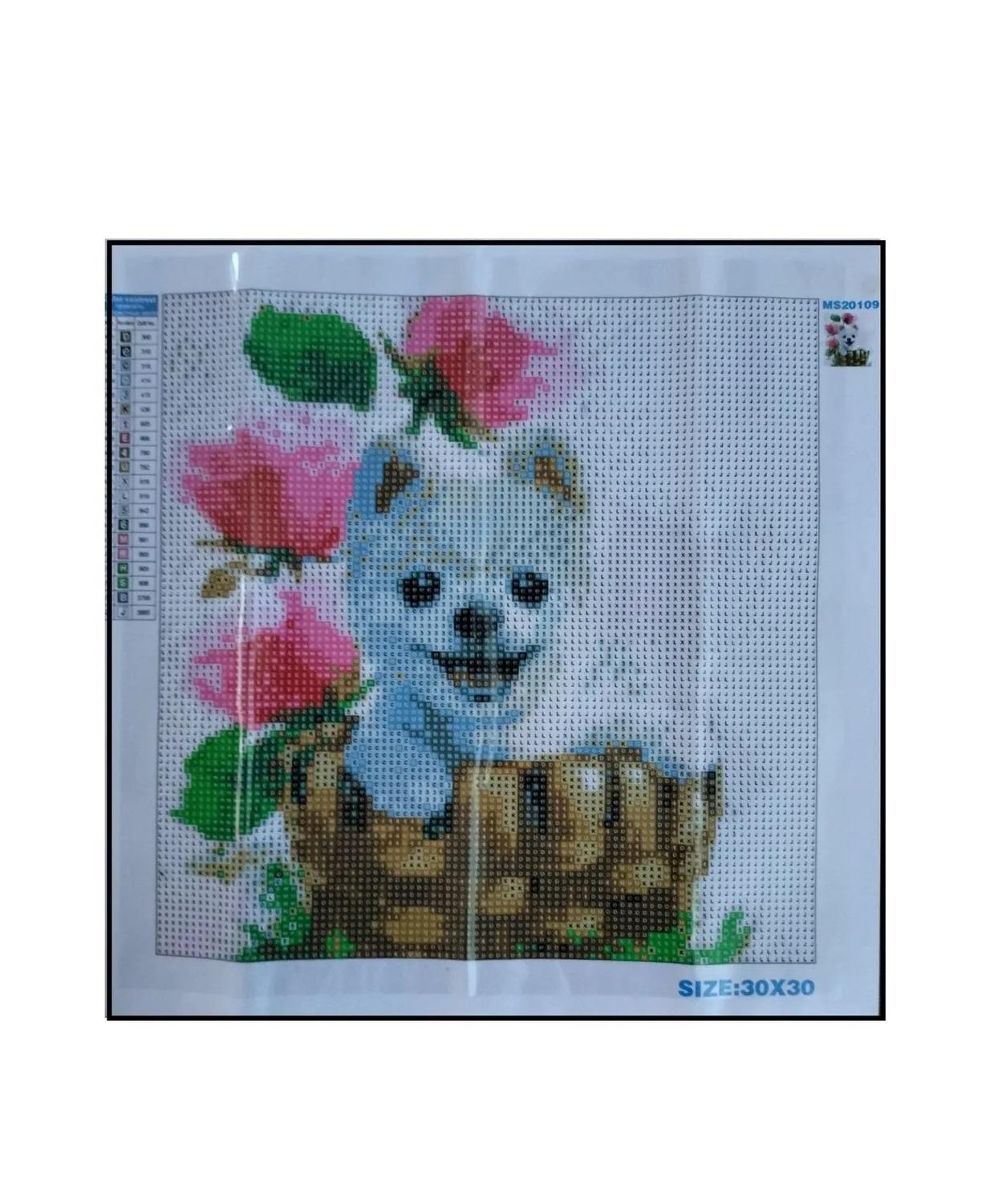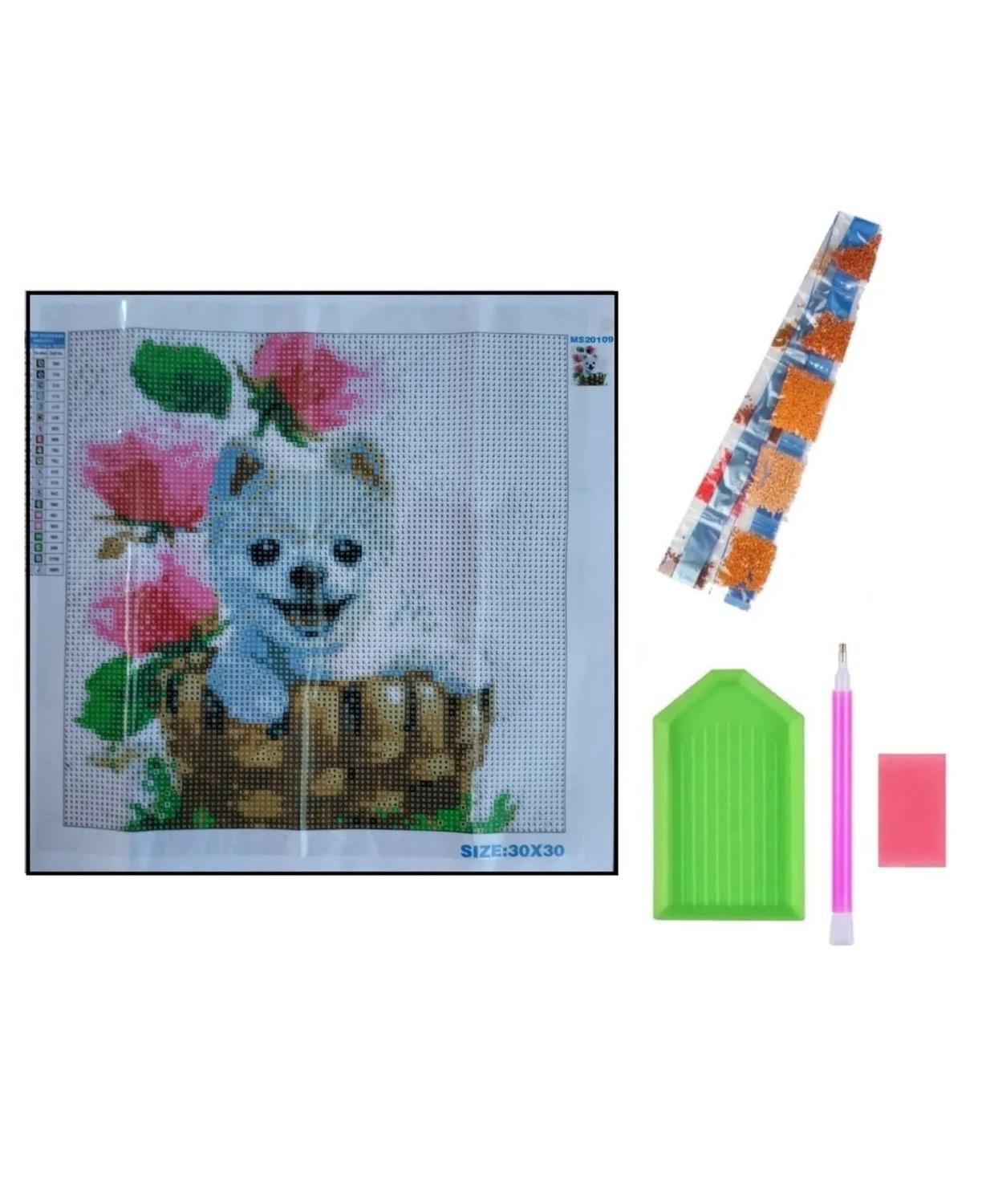 Алмазная мозаика картина стразами Щенок в корзине, 30х30 см