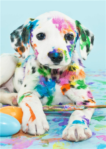 Алмазная мозаика картина стразами Щенок в краске, 30х40 см