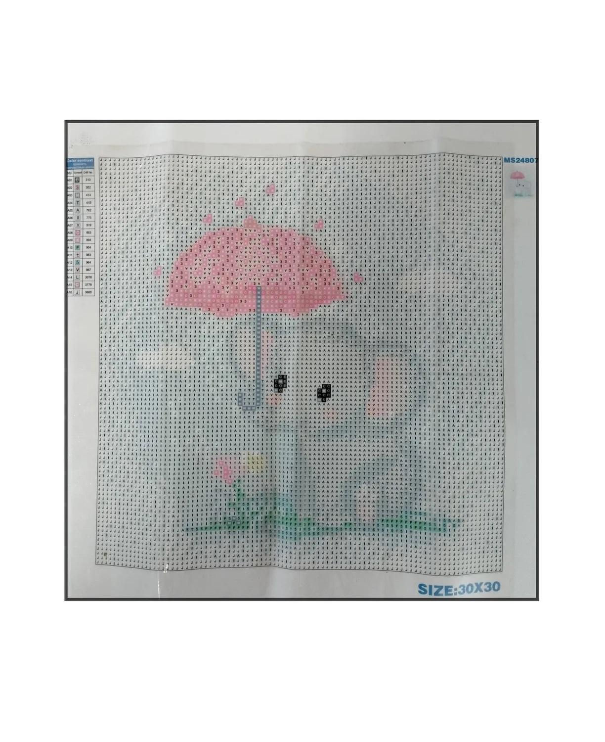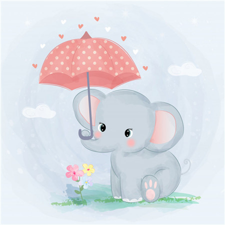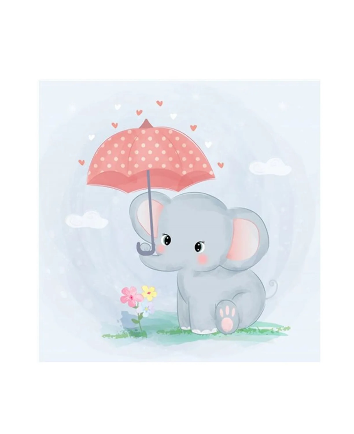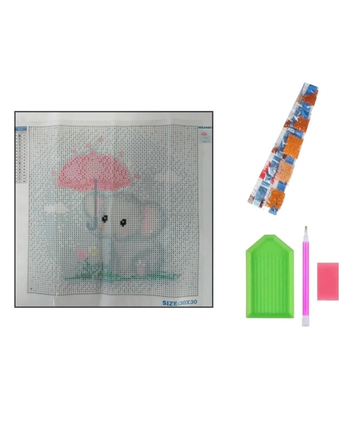 Алмазная мозаика картина стразами Слонёнок с зонтиком, 30х30 см