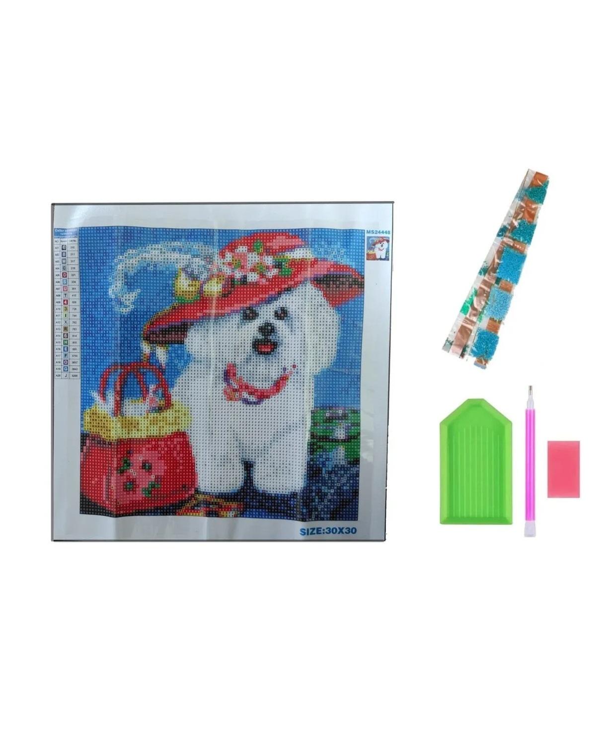 Алмазная мозаика картина стразами Собачка в дамской шляпке, 30х30 см