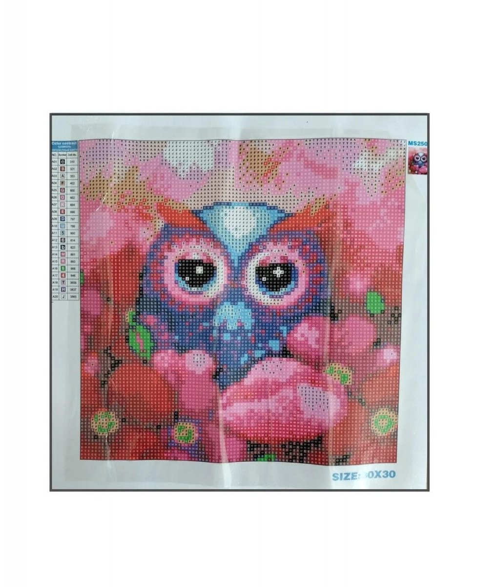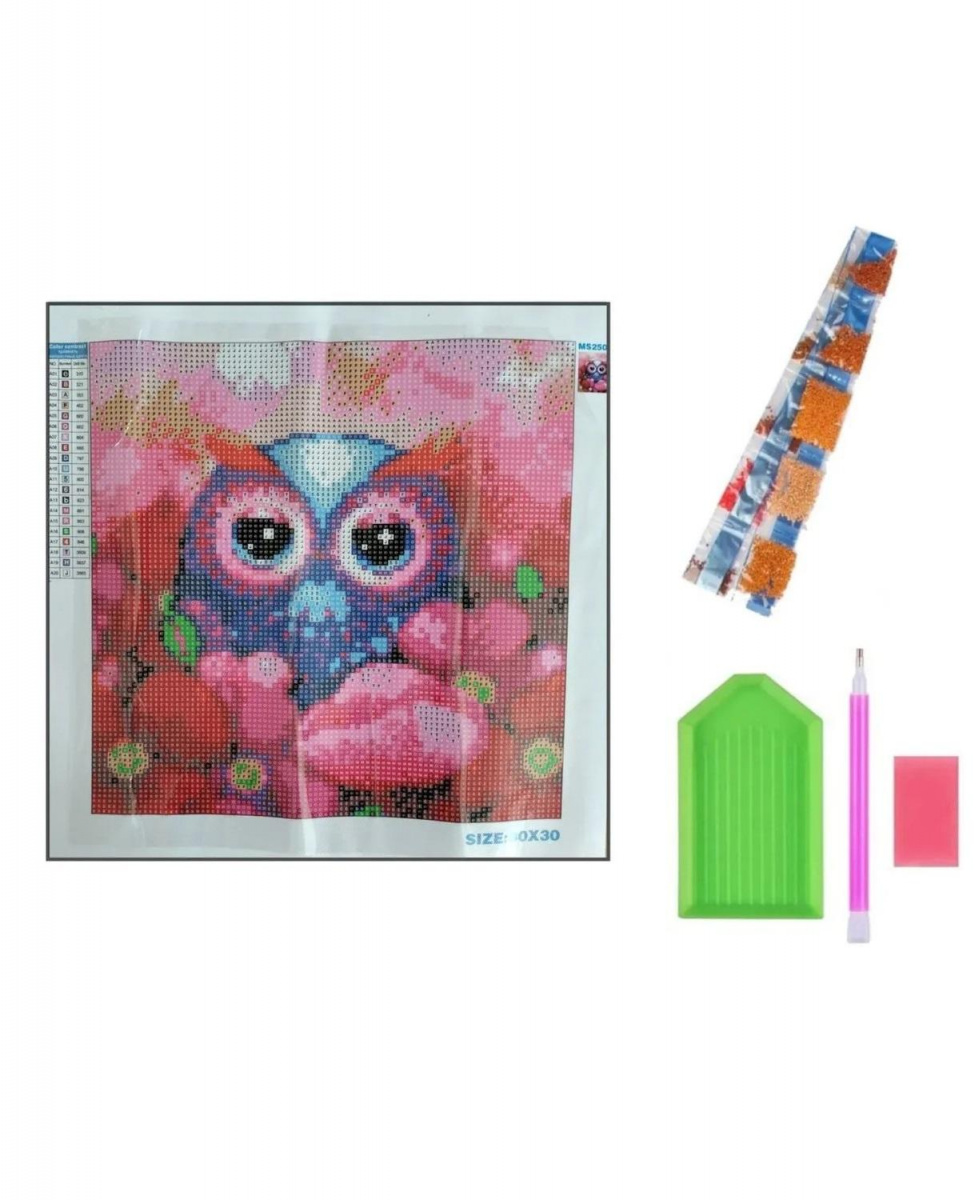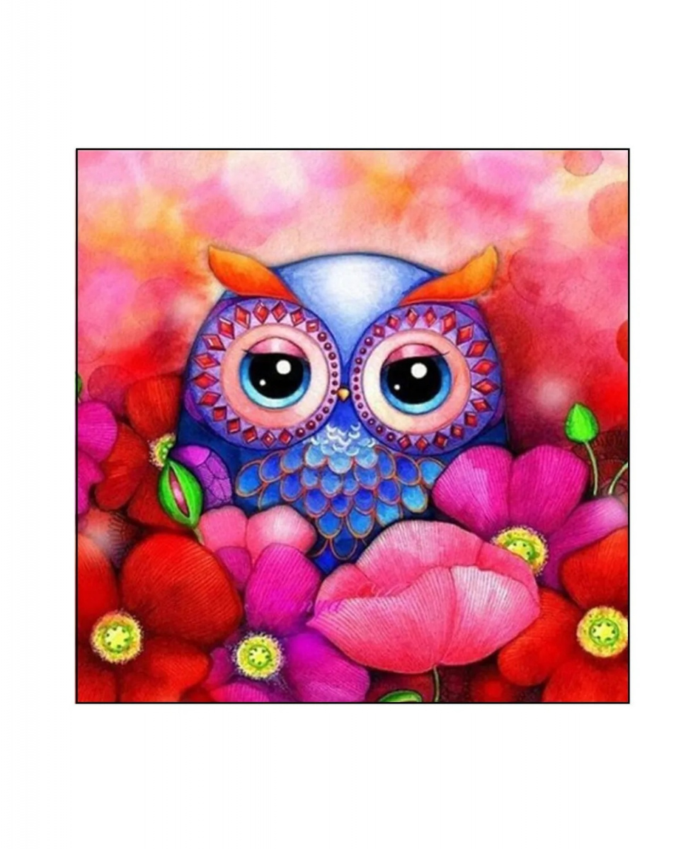 Алмазная мозаика картина стразами Сова с цветами, 30х30 см