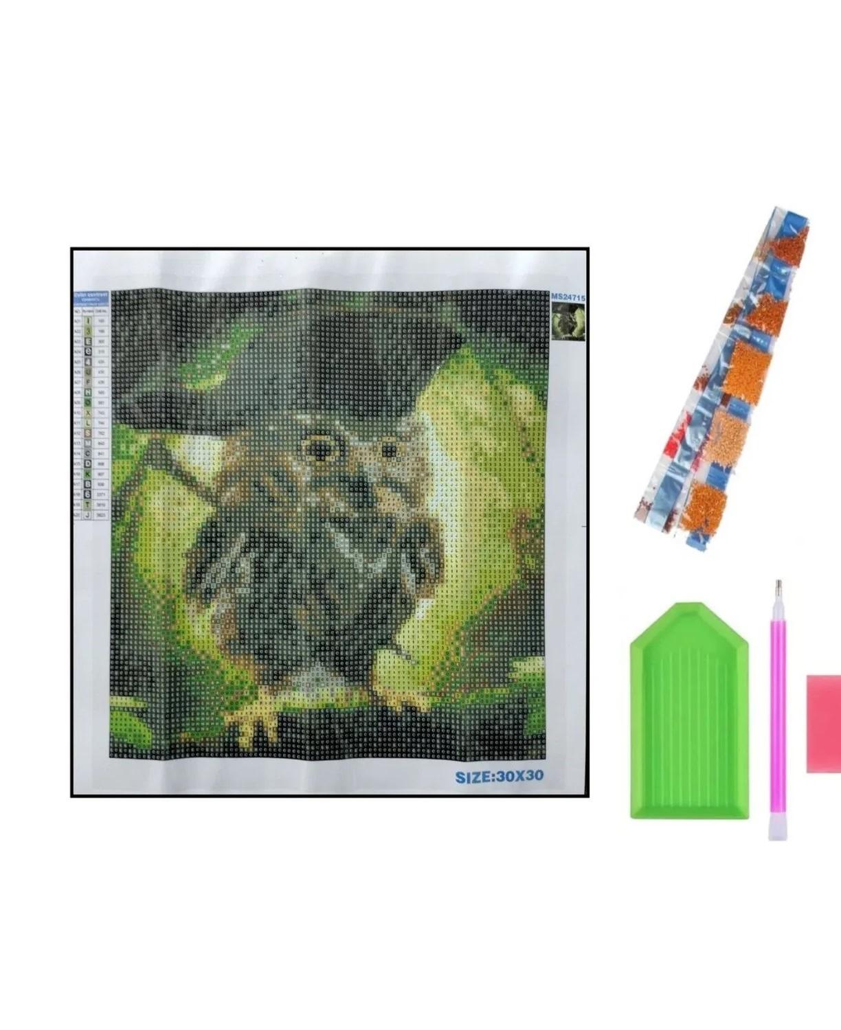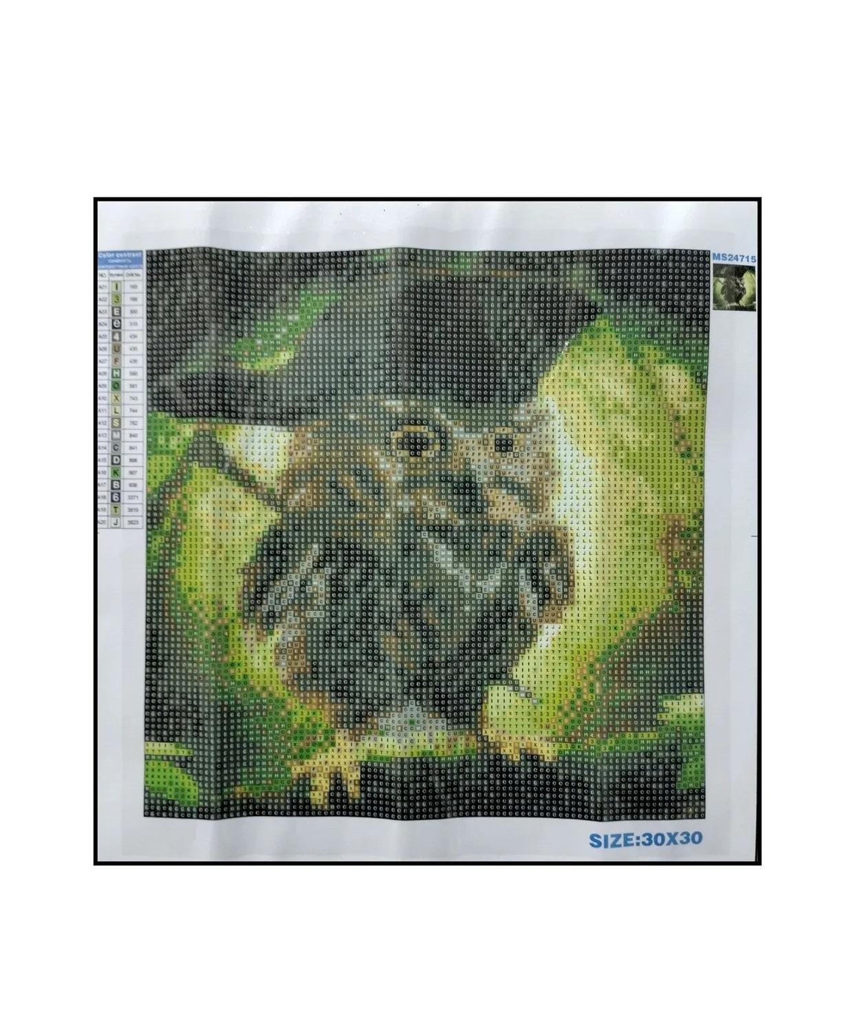 Алмазная мозаика картина стразами Сова в треуголке, 30х30 см