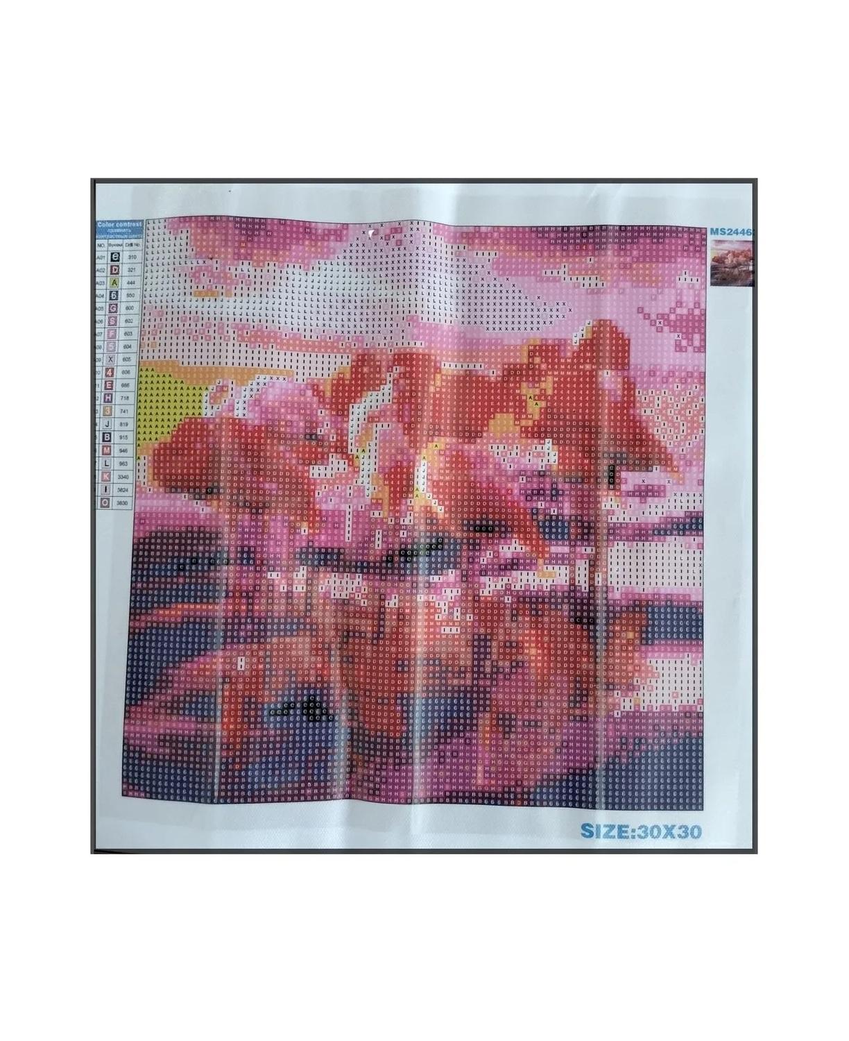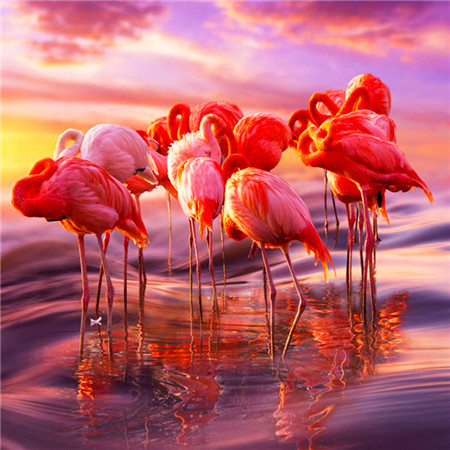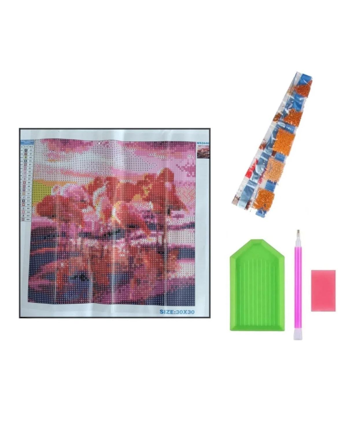 Алмазная мозаика картина стразами Стая розовых фламинго, 30х30 см