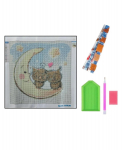 В комплект входит: холст без подрамника с нанесённым рисунком и клеевым слоем, набор страз, лоток для страз, стилус, липкий гель для стилуса.