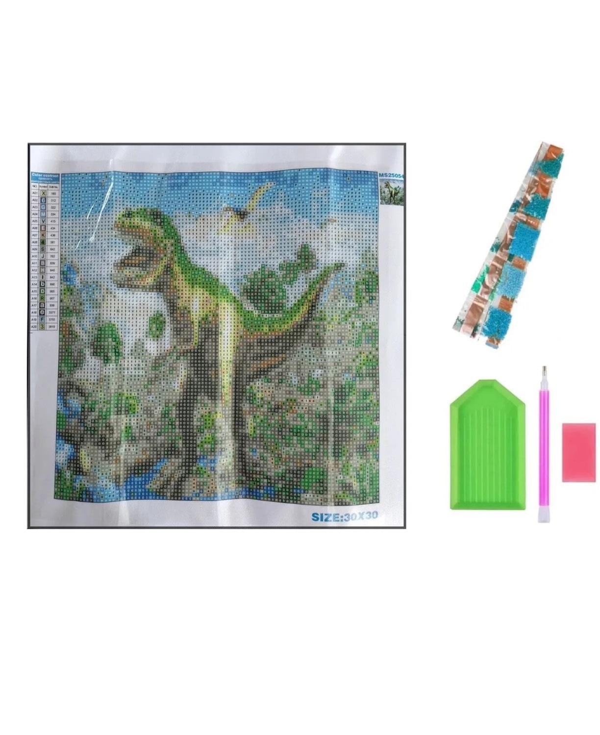 Алмазная мозаика картина стразами Тираннозавр в джунглях, 30х30 см