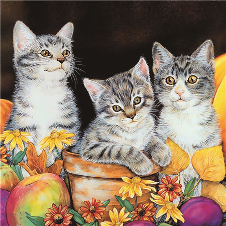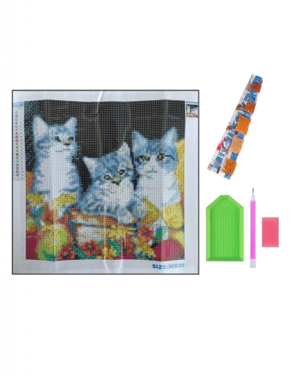 Алмазная мозаика картина стразами Три котёнка, 30х30 см