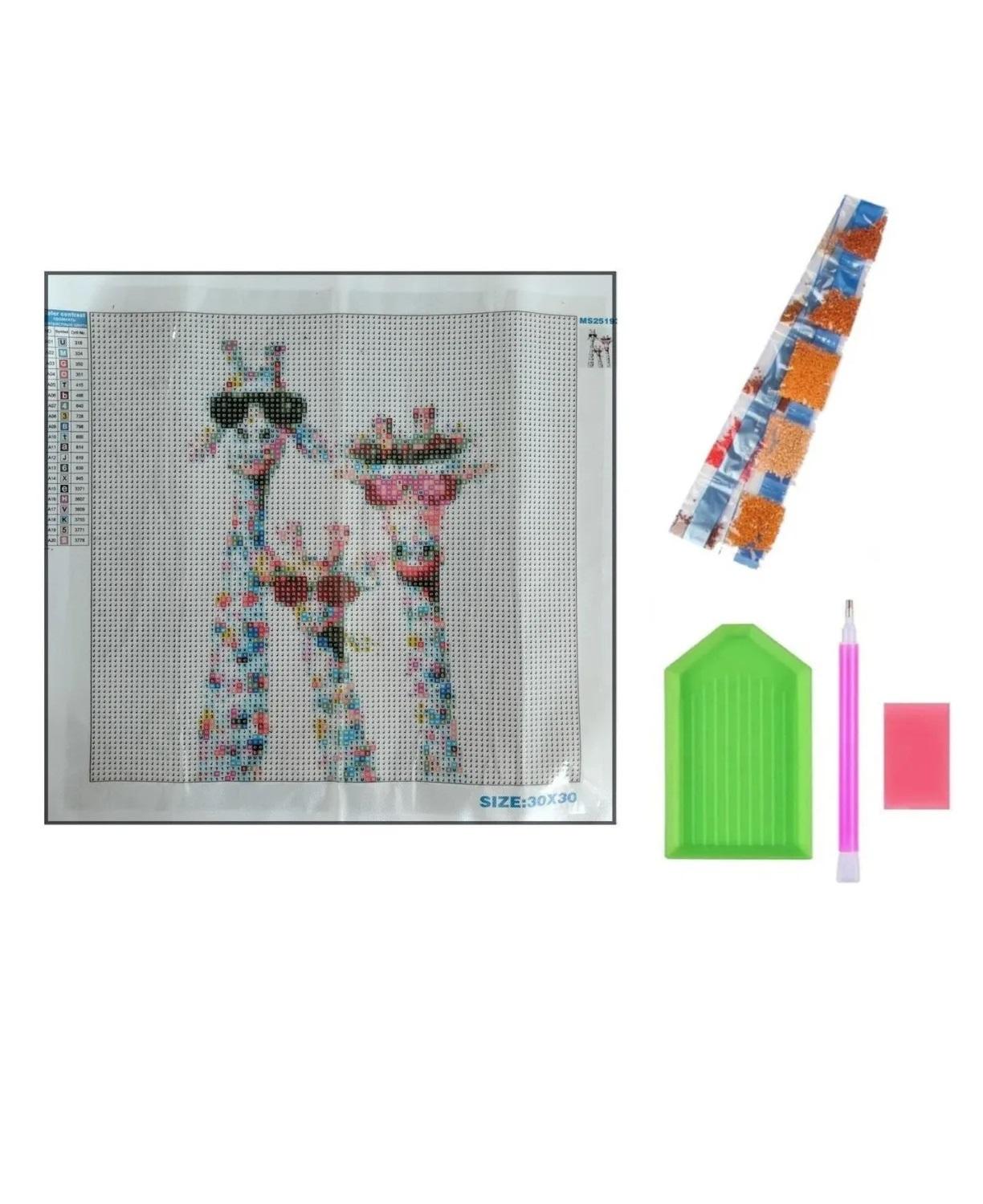 Алмазная мозаика картина стразами Три жирафа в очках, 30х30 см