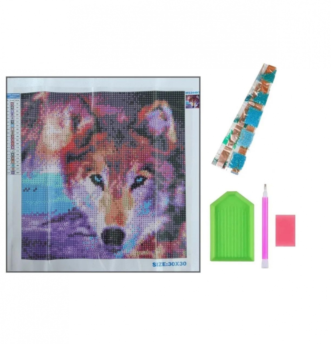 Алмазная мозаика картина стразами Волк, 30х30 см