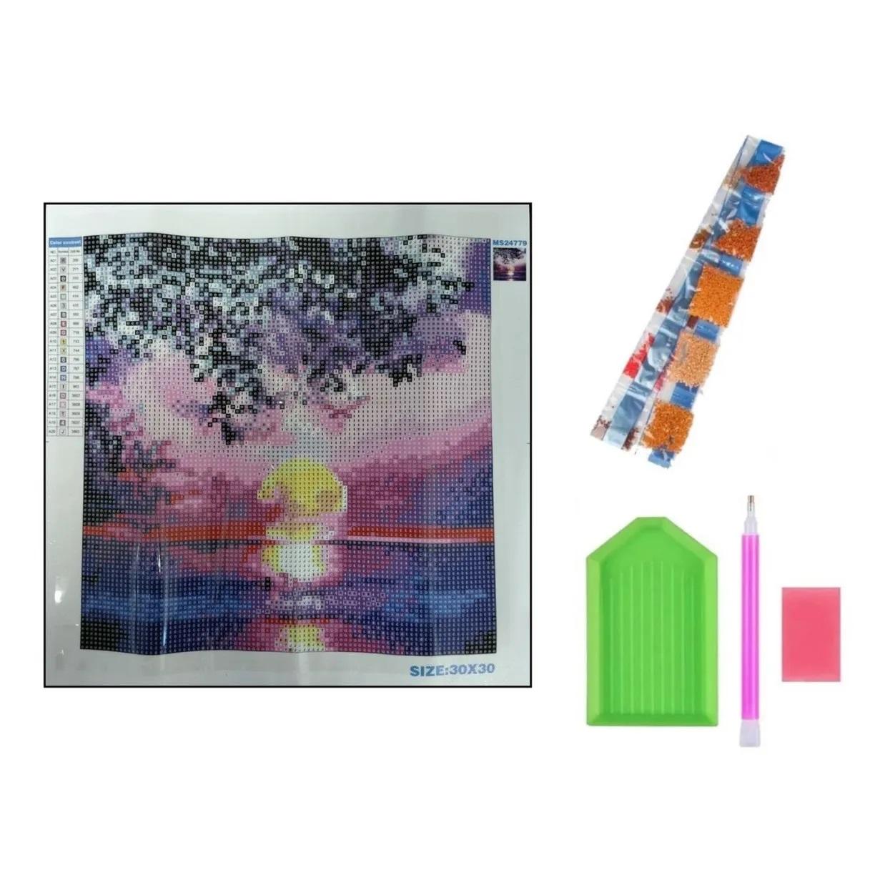 Алмазная мозаика картина стразами Закат на фоне моря, 30х30 см