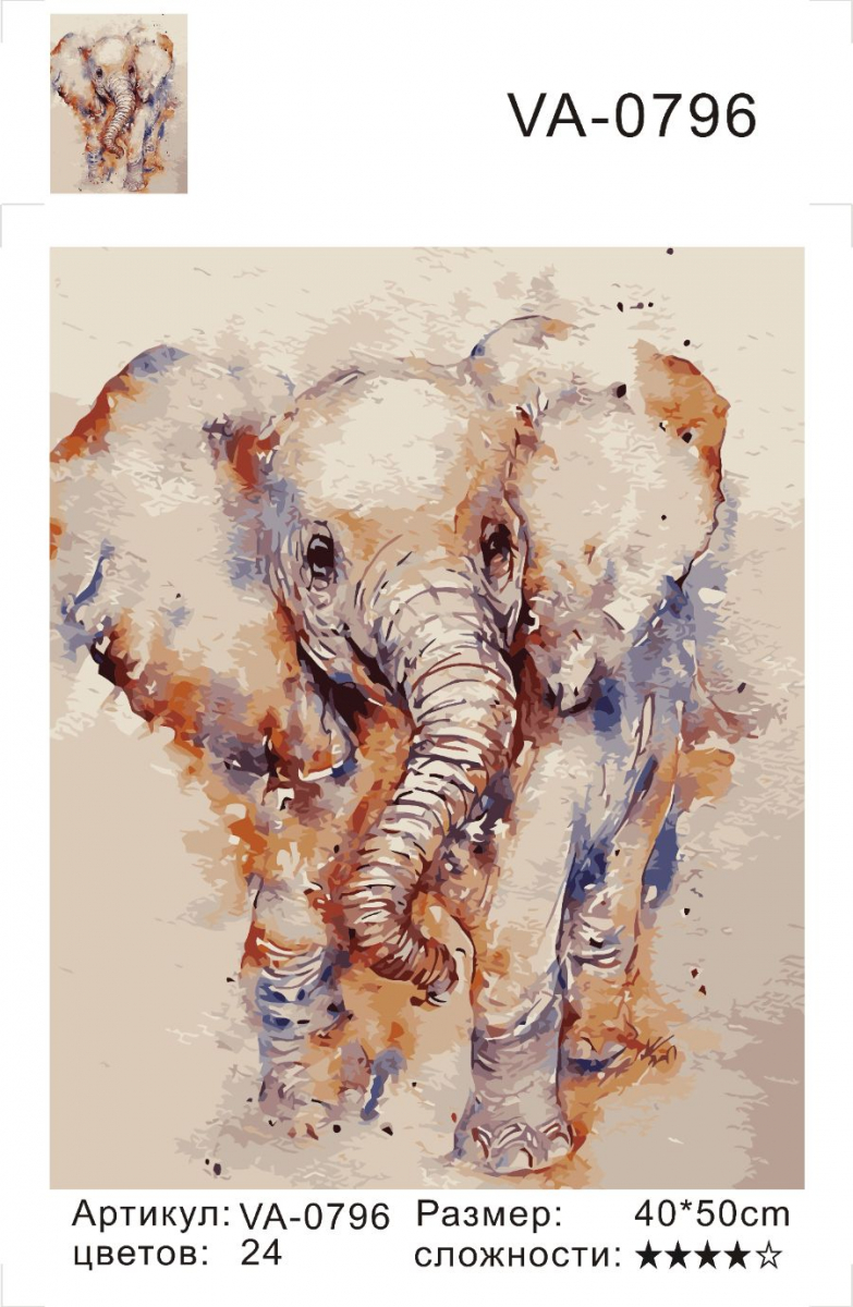 Распродажа Картины по номерам 40х50Слоненок