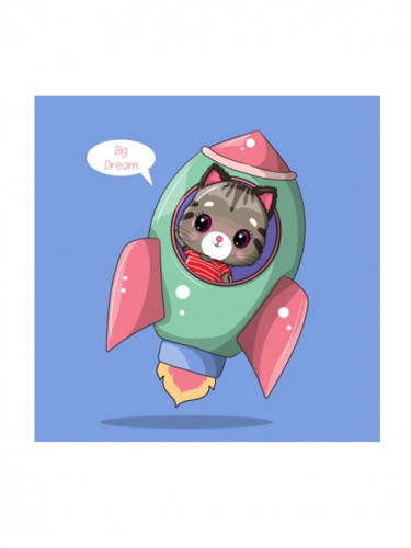 Алмазная мозаика картина стразами Кот в ракете, 15х20 см