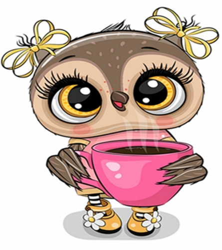 Алмазная мозаика картина стразами Сова с чашкой, 15х20 см