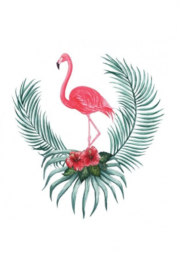 Алмазная мозаика картина стразами Фламинго с папоротником, 15х20 см