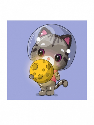 Алмазная мозаика картина стразами Кот - космонавт с Луной, 15х20 см