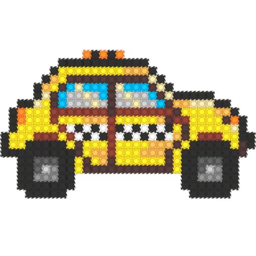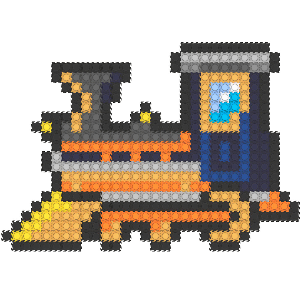 Яркий пиксельный конструктор содержит детали разного цвета.