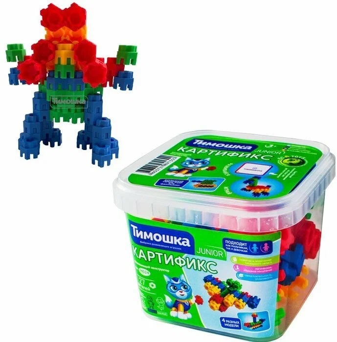 Яркий конструктор позволяет собрать 4 фигурки: корабль, бронтозавра, танк и самолёт.