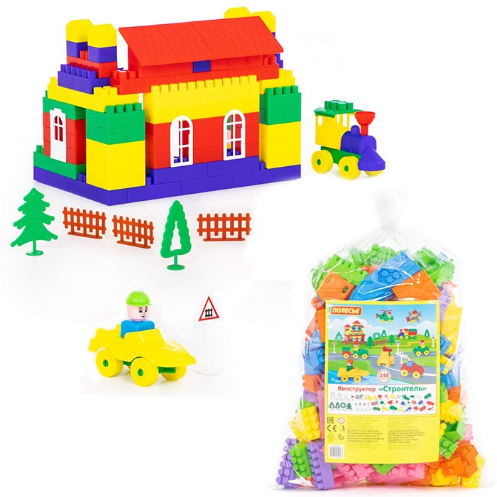 Конструктор "Строитель" 52568 П-Е от торговой марки "Полесье" - это функциональный набор из крупных деталей для создания увлекательной сюжетно-ролевой игры и прекрасный подарок и возможность для ребенка весело и с пользой провести время. В процессе игры ребенок сможет сконструировать вращающуюся площадку-карусель, а также множество вариаций построек. В комплект входят сборные фигурки человечков, детали для постройки техники и зданий, фигурки деревьев, блоки и аксессуары. Все наборы совместимы друг с другом и аналогичными наборами других производителей. Конструирование развивает логическое и образное мышление, наблюдательность и самостоятельность, а также моторику рук и ловкость пальцев. Игрушка красочно оформлена и изготовлена из качественного пластика с применением безопасных красителей. Занимаясь с конструктор