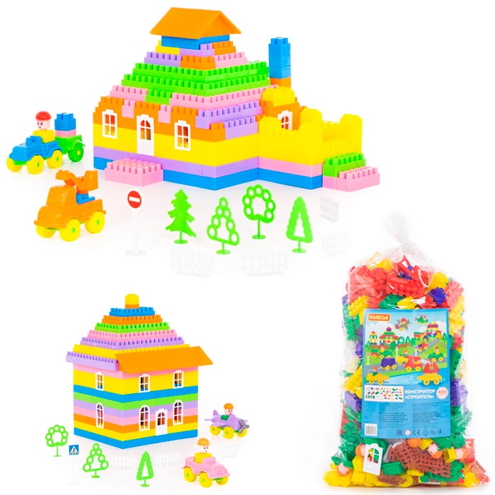 Конструктор "Строитель" состоит из 454 элементов различных форм и цветов. В набор входят детали для создания техники, строений, а также дорожные знаки, элементы ограждений и фигурки человечков, которые будет населять игрушечный город. Все элементы плотно соединяются друг с другом, а также легко расцепляются, имеют гладкие поверхности без зазубрин, и изготовлены из качественных безопасных материалов. Игра с таким конструктором поможет ребенку в развитии мелкой моторики, пространственного мышления, воображения и цветового восприятия. Цвета представлены в ассортименте.