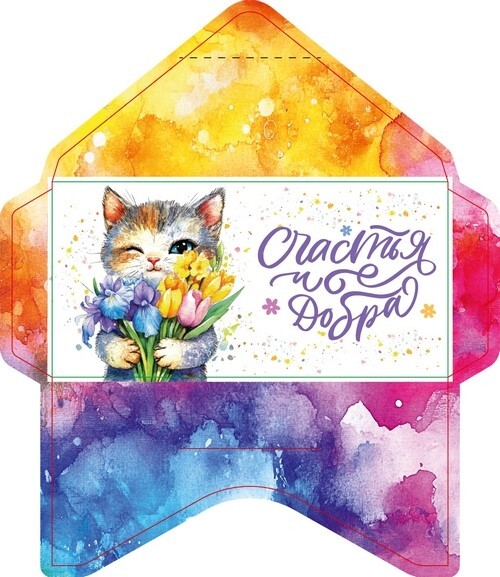 Открытка-конверт 16.8*8.3 см Кот с букетом 539249