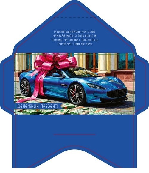 Открытка-конверт 16.8*8.3 см Машина с бантом 539276