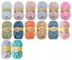 Пряжа равномерной толщины, скрученная из четырех нитей. Нить средней толщины, мягкая, при вязании ровно ложится, не скатывается, приятная на ощупь. Вес 50 г/227 м. Экономичный метраж, для джемпера размера 44-46 потребуется 200 - 250 г пряжи. Уход за готовым изделием: ручная стирка t-30°, не гладить, щадящий режим химчистки, не отбеливать, сушить на горизонтальной поверхности. Рекомендуемый диаметр спиц для пряжи 2.5 - 3.0 мм. На вязаном изделии размером 10х10 см получается 34 ряда по 26 петель.