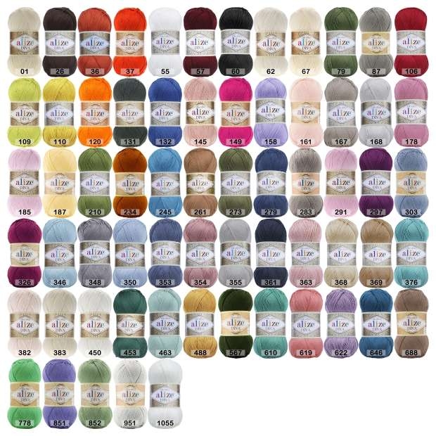 Ализе дива. Легкая шелковистая пряжа для весенних или летних вещей. Приятная на ощупь, гигроскопичная она подойдет для сарафанов, туник, платьев, легких костюмов, кофт, шалей и накидок. Пряжа не скатывается, не вызывает аллергию, не линяет и не оставляет ворсинок на другой одежде.