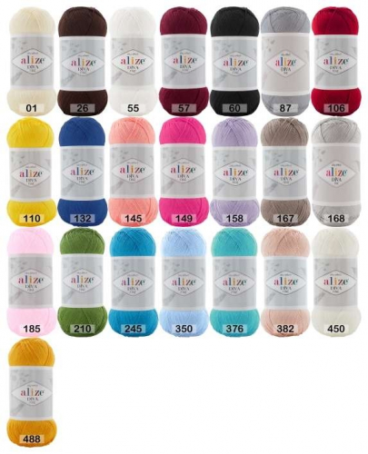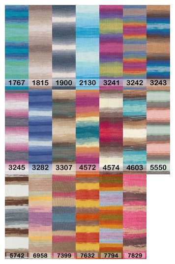 Ализе дива батик. Легкая шелковистая пряжа удлиненной секции окрашивания для весенних или летних вещей. Приятная на ощупь, гигроскопичная она подойдет для сарафанов, туник, платьев, легких костюмов, кофт, шалей и накидок. Пряжа не скатывается, не вызывает аллергию, не линяет и не оставляет ворсинок на другой одежде.