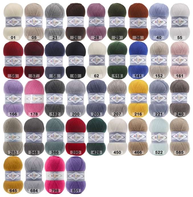 Ализе ланаголд 800. Тонкая полушерсть. Можно выполнять невесомые ажуры (тонкие свитера и туники, шали и палантины). Спицами 2,5-3, крючком 1,5-2