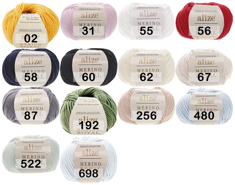 Ализе мерино ройал. Пряжа Merino Royal - нежнейшая австралийская шерсть "superwash", очень мягкая и достаточно толстая для вязания объемных вещей. Ниточка воздушная и шелковистая, приятная на ощупь, с легким блеском. Изделия из этой пряжи получаются невероятно нежными, теплыми и уютными.Рекомендуются спицы и крючок 4-5.