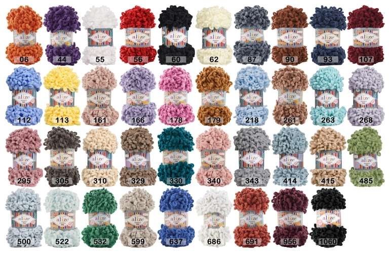 Alize Puffy Fine это плюшевая пряжа c уже готовыми петлями для вязания без использования спиц или крючка. Вам потребуется только продевать эти петли одна в другую. Основное отличие пряжи пуффи от пуффи файн - это высота петли. У пряжи пуффи высота петли около 40 мм, а у пуффи файн - 27 мм. Соответственно, расстояние между петлями тоже разное: у пряжи пуффи оно составляет 20 мм, а у пуффи файн примерно 15 мм. Поэтому, из пряжи пуффи получаются более объемные, крупные изделия. А из пряжи пуффи файн более плотный узор.