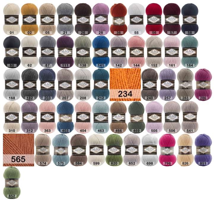 Ализе суперлана класик. Классическая однотонная пряжа средней толщины с 25% шерсти. Подходит для создания вещей на осень. пуловеры, платья, кардиганы, шапки и шарфы из этой пряжи отлично держат форму и прекрасно согреют Вас в холодную погоду. Инструменты: спицы 3 – 4, крючок 3 - 4.
