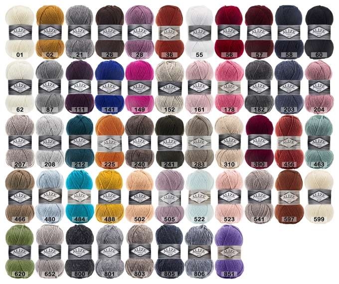 Доступная в нашем интернет-магазине палитра цветов Alize Superlana Maxi включает в себя все необходимые для создания осенне-зимних вещей цвета: бордовый, синий, оранжевый, розовый и серый, а также различные их оттенки.