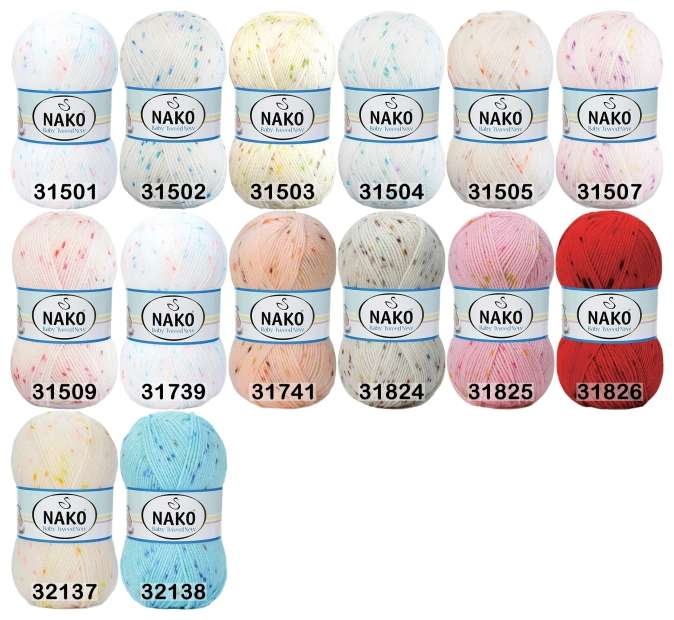 Нако беби твид нью. Пряжа из 100% акрила для детских изделий и для тех, кто чувствителен к шерсти. Мягкая пряжа с цветными вкраплениями. Толщина нити средняя, что позволит быстро связать новую вещь.