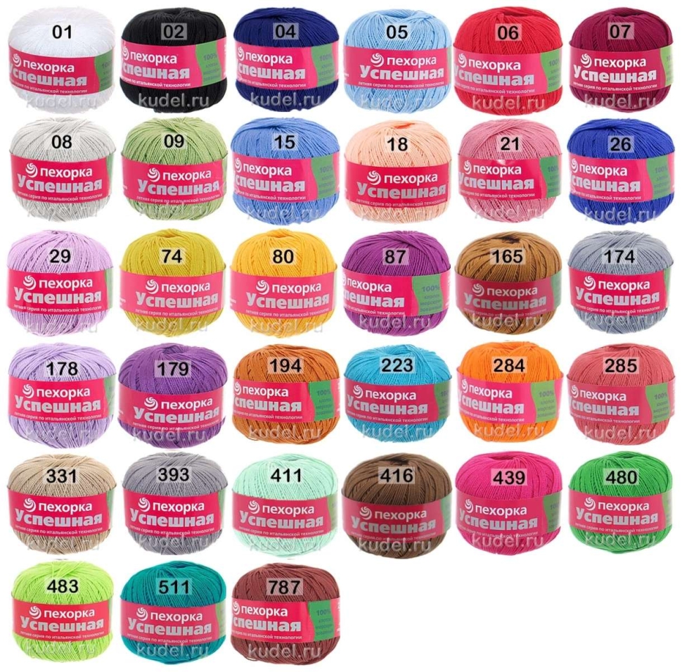 Успешная - тонкая, хлопковая ниточка с лёгким блеском с устойчивой окраской. Очень мягкая и комфортная. Прекрасно вяжется как и спицами , так и крючком. Предназначена прежде всего для вещей летнего гардероба как для взрослых так и для детей. может с успехом применяться для вязания топиков, панамок, шляпок, юбок и платьев. особенно красиво выглядит в крючке. рекомендуемый номер спиц - от 2 до 3, крючок от 2 до 3,5. хорошо вяжется на вилке.