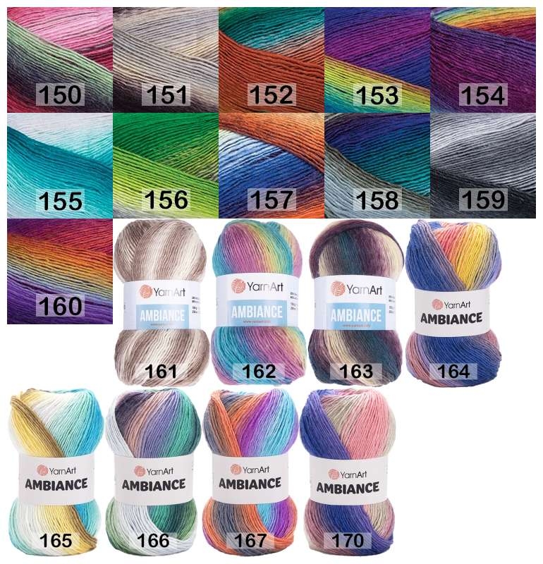 Пряжа ЯрнАрт Амбиэнс. Ощутите мягкость и комфорт изделий, связанных из полушерстяной пряжи с гармоничными переходами цветов! Она сама создает уникальные цветовые полосы благодаря секционному крашению, что придаст вашей одежде элегантный вид. Создание изделий из этой нити - настоящее удовольствие! Слабо выраженная крутка обеспечивает безупречную мягкость, а акриловые волокна в составе делают изделия стойкими к износу. Подходит для осенне-зимнего сезона. Рекомендуемые размеры спиц/крючка №4. Создавайте неповторимые вещи с этой уникальной пряжей, которые будут радовать вас и ваших близких многие года!
