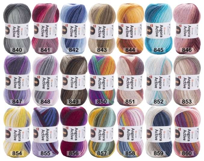 Angora Active содержит тонкую шерсть, которая не только добавляет натуральной мягкости и пушистости, но и обеспечивает гигроскопичность вязаного полотна, благодаря чему вещь будет комфортной и приятной на ощупь. Нить окрашена по секционной технологии, что создает привлекательные цветовые сочетания в длинных секциях. Это особенно понравится начинающим вязальщикам, так как для того, чтобы достичь красивого рисунка, достаточно владеть простой техникой лицевая гладь.