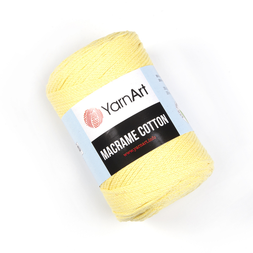 Macrame Cotton - это хлопковая пряжа с небольшим добавлением полиэстра. Macrame Cotton имеет плотную и жесткую структуру, что позволяет изделиям хорошо сохранять форму, держать узлы и узоры.