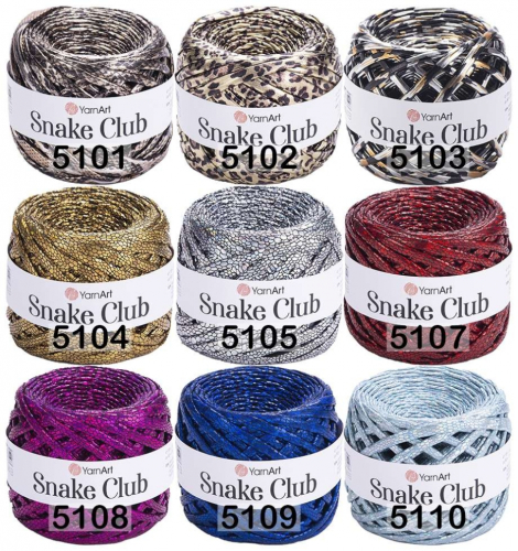 Пряжа ЯрнАрт Снейк Клуб - это металлизированная пряжа, которая подарит вашим изделиям блеск и шик. Сочетание металлического блеска, имитации кожи змеи и мягкости делает ее идеальным выбором для творчества. Она идеально подходит для создания эксклюзивных сумок и ярких изделий для интерьера и аксессуаров.