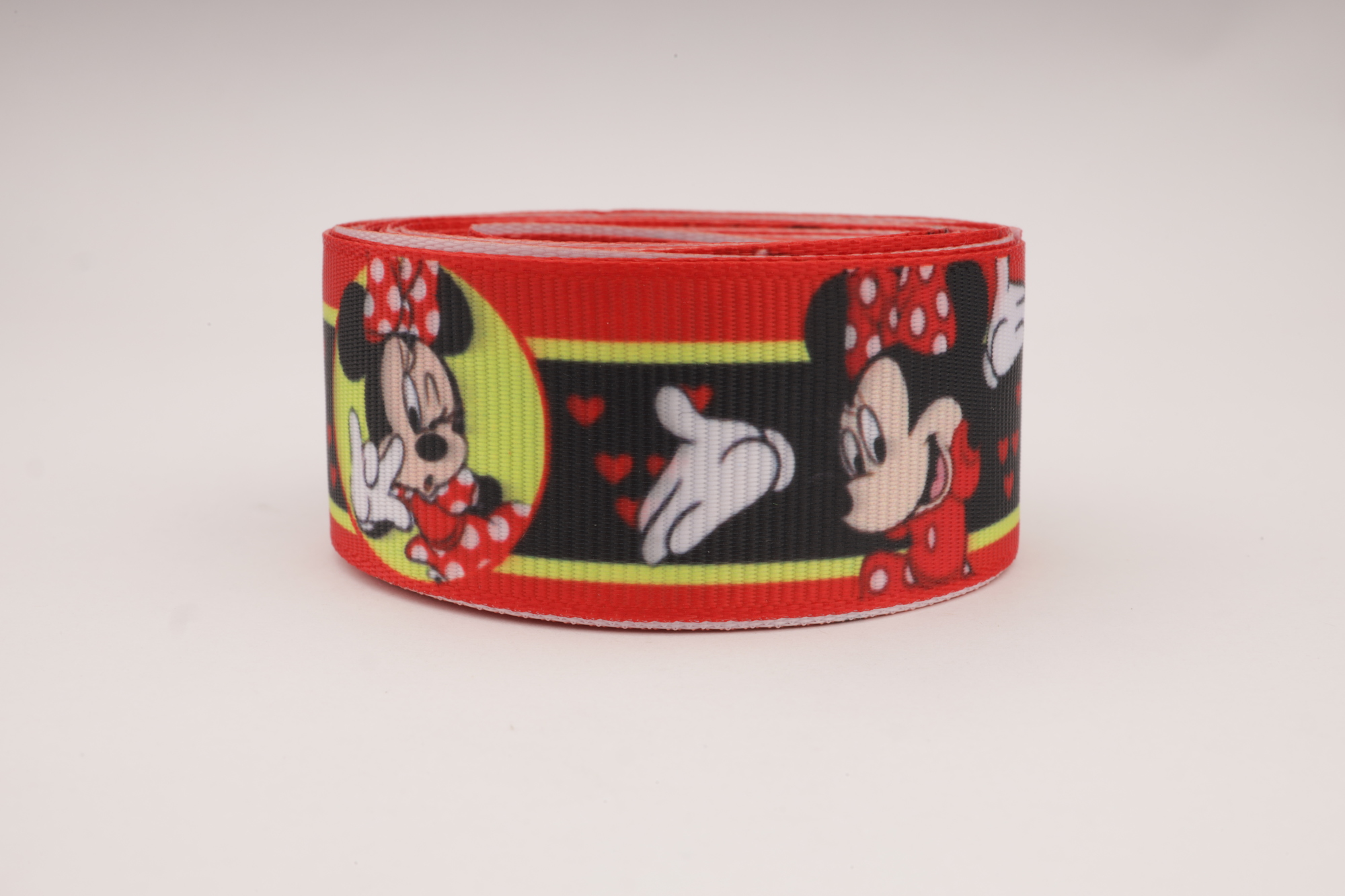 Купить репсовую ленту с рисунком "Минни"(мультики, 3D)  25мм * 6 ярдов оптом и в розницу по оптовым ценам с доставкой во все города России можно в нашем интернет-магазине.